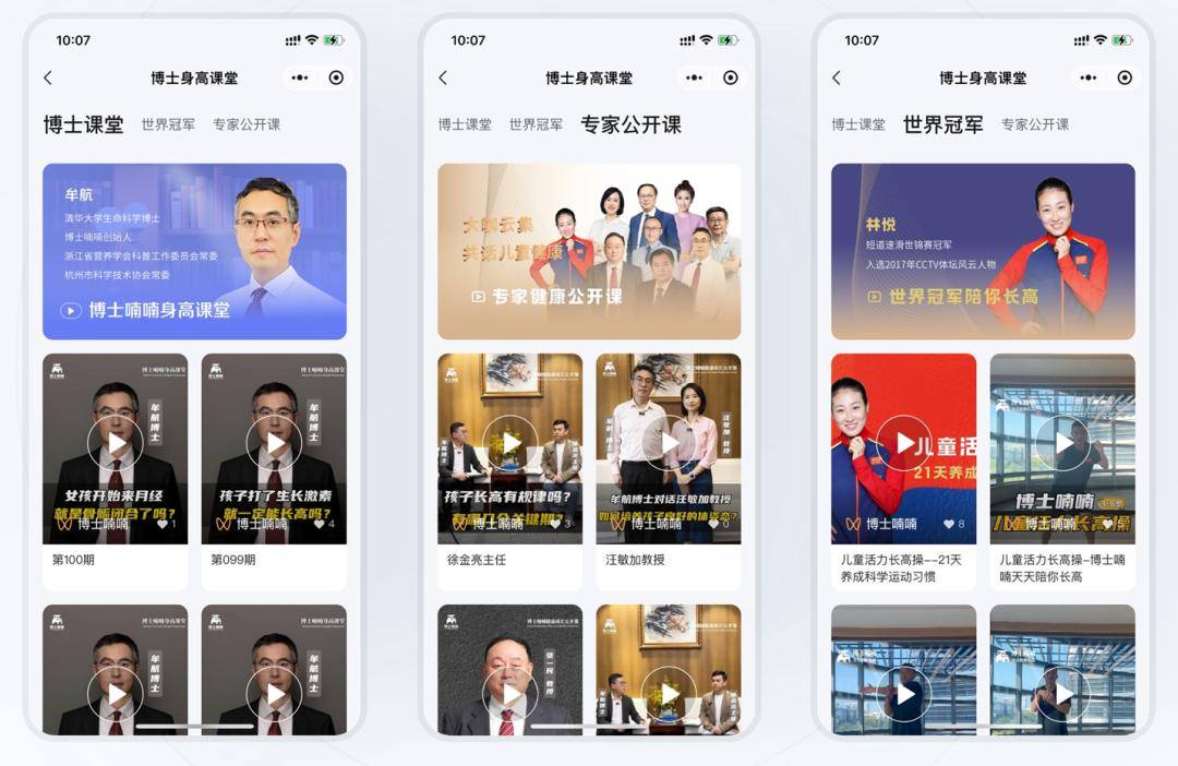 家长孩子建立健康意识和孩子养成健康习惯,对于长高至关重要。博士喃喃构建健康教育矩阵,打通科学认知“最后一公里” 。邀请清华、北大、北体大、北师大、浙大、温医大等知名专家及短道速滑世界冠军林悦,推出了三大明星栏目——《清华博士身高课堂》、《专家健康公开课》、《世界冠军陪你长高》,建设博士喃喃身高管理科普中心,科普家长孩子上百万人次,搭建专业科学与家庭实践的坚固桥梁。